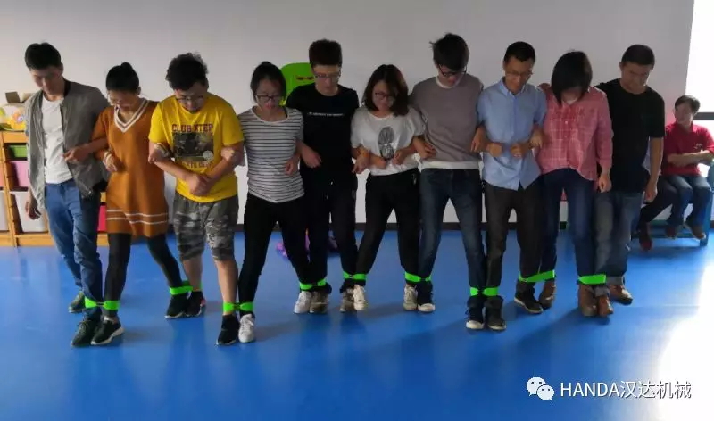 第一個項目是同心協(xié)力跑,各個部門選出10人組成一支隊伍,每兩人之間將腳用布條綁在一起奔跑,以到達終點用時的多少決出勝負。每個隊伍必須有兩名女性參與。