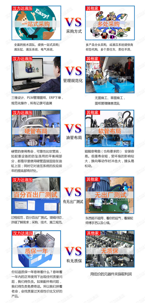 方案確認(rèn)后,李總向我們?cè)儐栁覀児井a(chǎn)品的質(zhì)量和價(jià)格。。宋先生給李總介紹了漢達(dá)的公司歷史,漢力達(dá)專注液壓行業(yè)19年了,油缸和液壓泵站一起配套提供的,一站式采購(gòu),比較方便,出了問題也只要找到漢達(dá)就行,不需要多頭聯(lián)系供應(yīng)商。而且標(biāo)準(zhǔn)液壓站的設(shè)計(jì)、加工流程都是非常規(guī)范的,圖紙PLM存檔,客戶資料EPR存檔,做過一次的所有記錄都有,以后照著那份做,液壓經(jīng)銷門店的液壓站便宜的原因之一是在于工人現(xiàn)場(chǎng)組裝,沒有圖紙沒有相關(guān)管理成本。另外漢力達(dá)的標(biāo)準(zhǔn)液壓站采用的是硬管布局,外觀精美,使用壽命長(zhǎng),同時(shí)它對(duì)液壓系統(tǒng)的反應(yīng)頻率的提高有好處。我們的產(chǎn)品質(zhì)保一年,避免售后成本高,我們的供應(yīng)商都是長(zhǎng)期合作質(zhì)量穩(wěn)定的合作伙伴李總表示他們也是一樣,做任何一款產(chǎn)品,質(zhì)量性能的保證,才是客戶想要的。